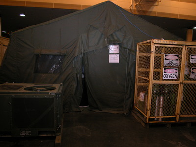 Medical supply tent, Combat Support Hospital at the Poland Street Wharf, New Orleans.