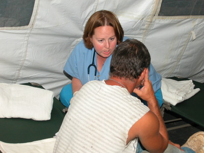 LSUHSC-NO faculty providing assistance to the Combat Support Hospital at the Poland Street Wharf, New Orleans.