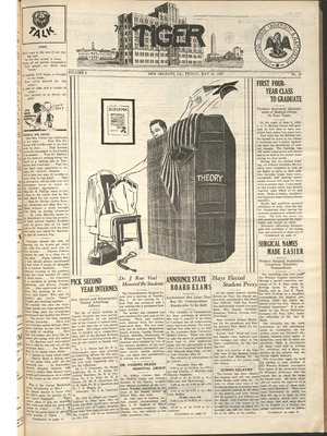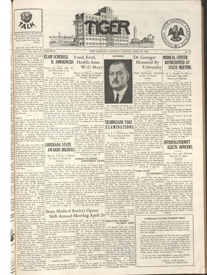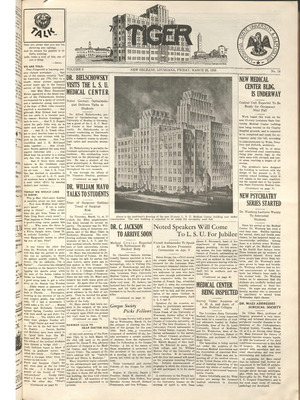 "The Tiger" was the Louisiana State University School of Medicine Student Newspaper published weekly then bimonthly across 8 volumes from September 19th, 1932 to May 24, 1940.